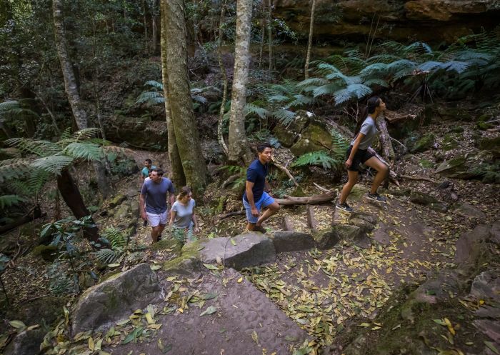 From Leura, drive to Blackheath for a scrumptious lunch of Mediterranean share plates cooked on a 150-year-old ironbark-fuelled oven at Ates. Or, for something on the go, head to This Little Piggy Deli for a great selection of pastries, salads and other homemade treats. After lunch, it’s time to take in the panoramic view from nearby Evans Lookout. Breathe in the refreshing mountain air as you peer out towards the sandstone cliff wall of Grose Valley with Govetts Creek winding across the forested floor. From Evans Lookout, it’s easy to set out on the Grand Canyon Track, a magical trail past waterfalls, rock walls and pristine rainforest brimming with native plants.
