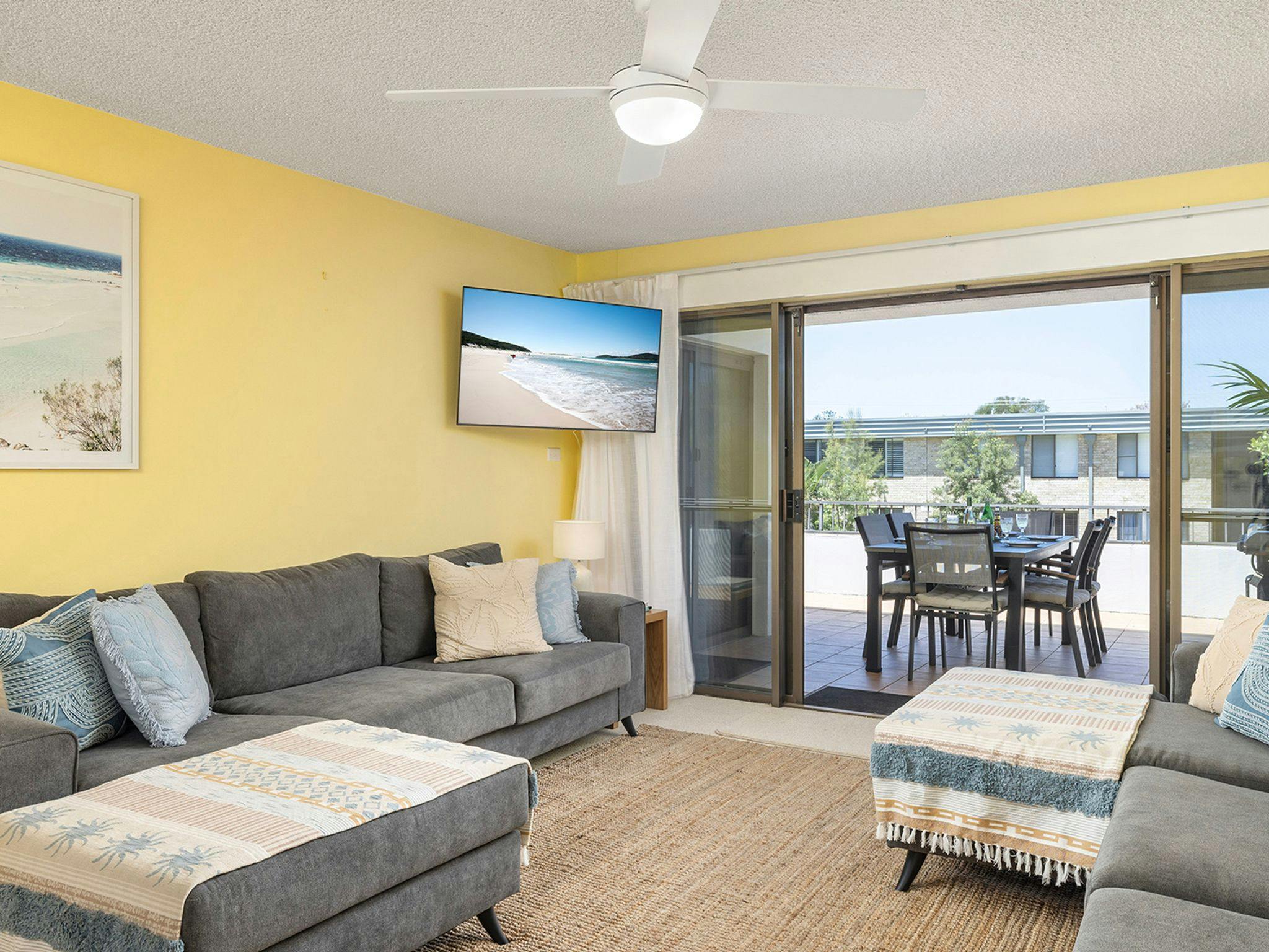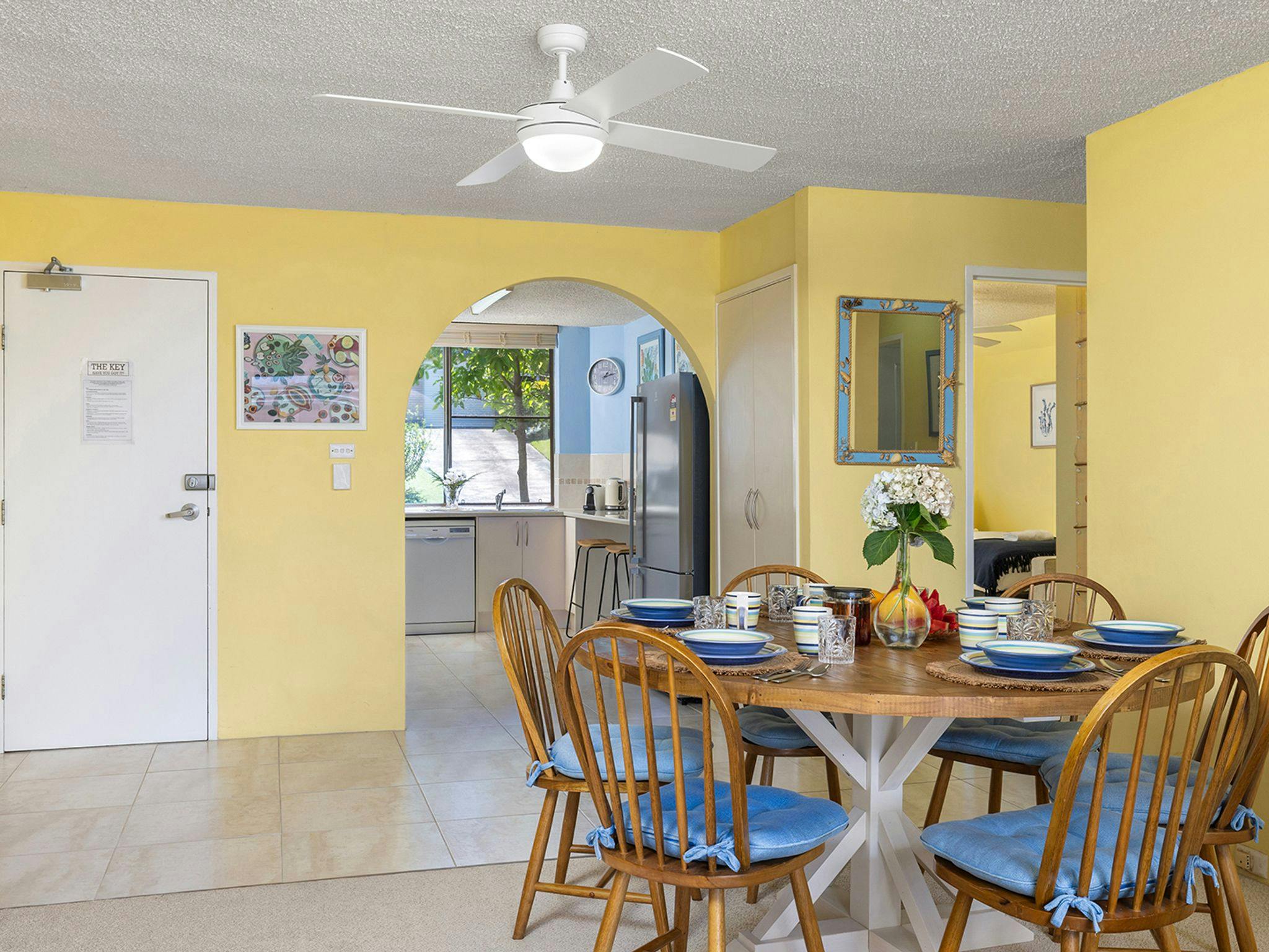 This charming coastal apartment offers a comfortable and inviting interior, perfect for those looking to unwind and relax. With two spacious bedrooms, it comfortably accommodates couples, families, or small groups. The open-plan lounge area provides plenty of space to kick back and relax while enjoying a movie on the smart TV. The fully equipped kitchen includes a coffee machine for your morning brew and all the necessary appliances to prepare meals during your stay. A dining table for six allows everyone to gather, and the laundry features of a washing machine and dryer will complete your stay.